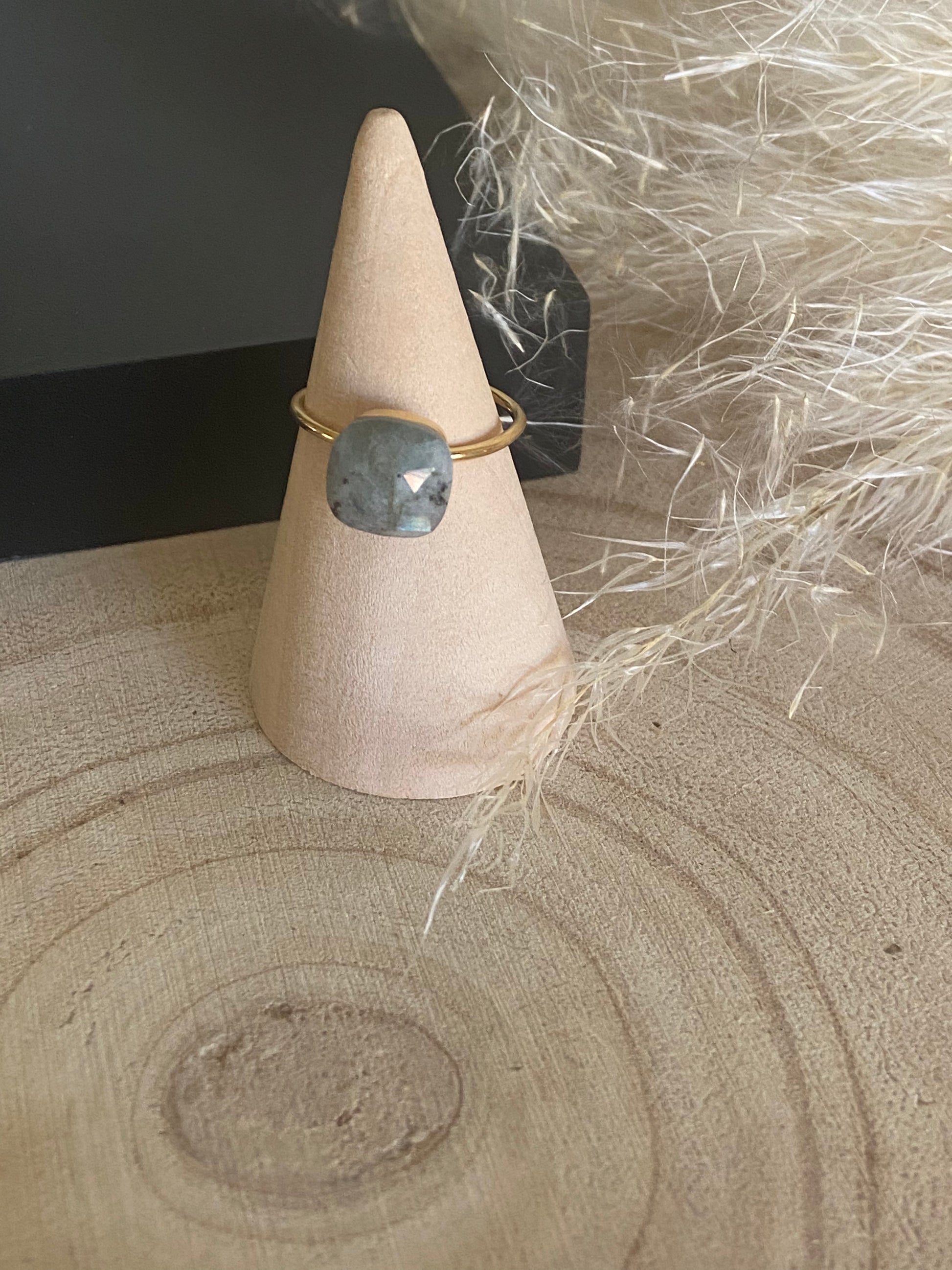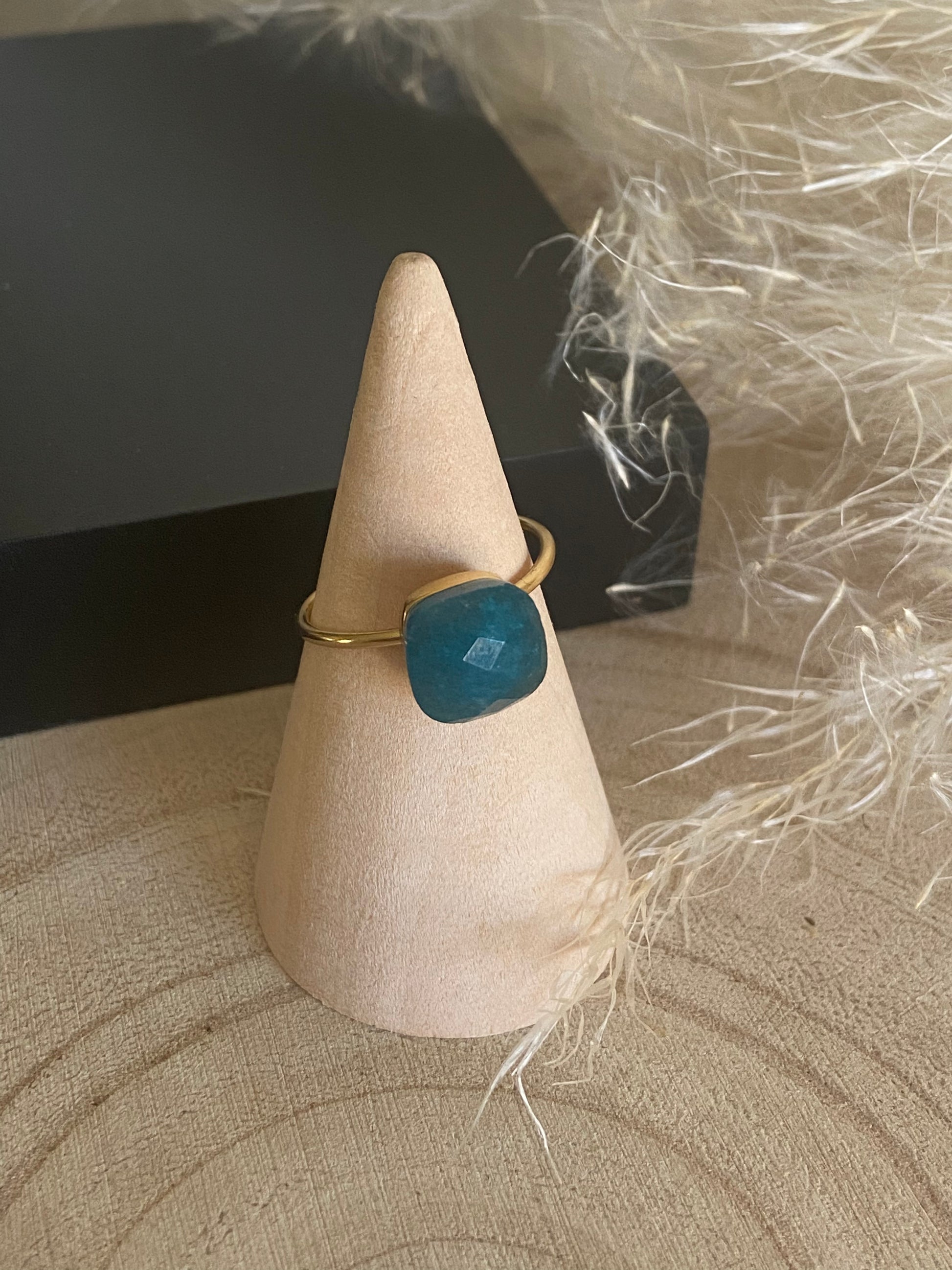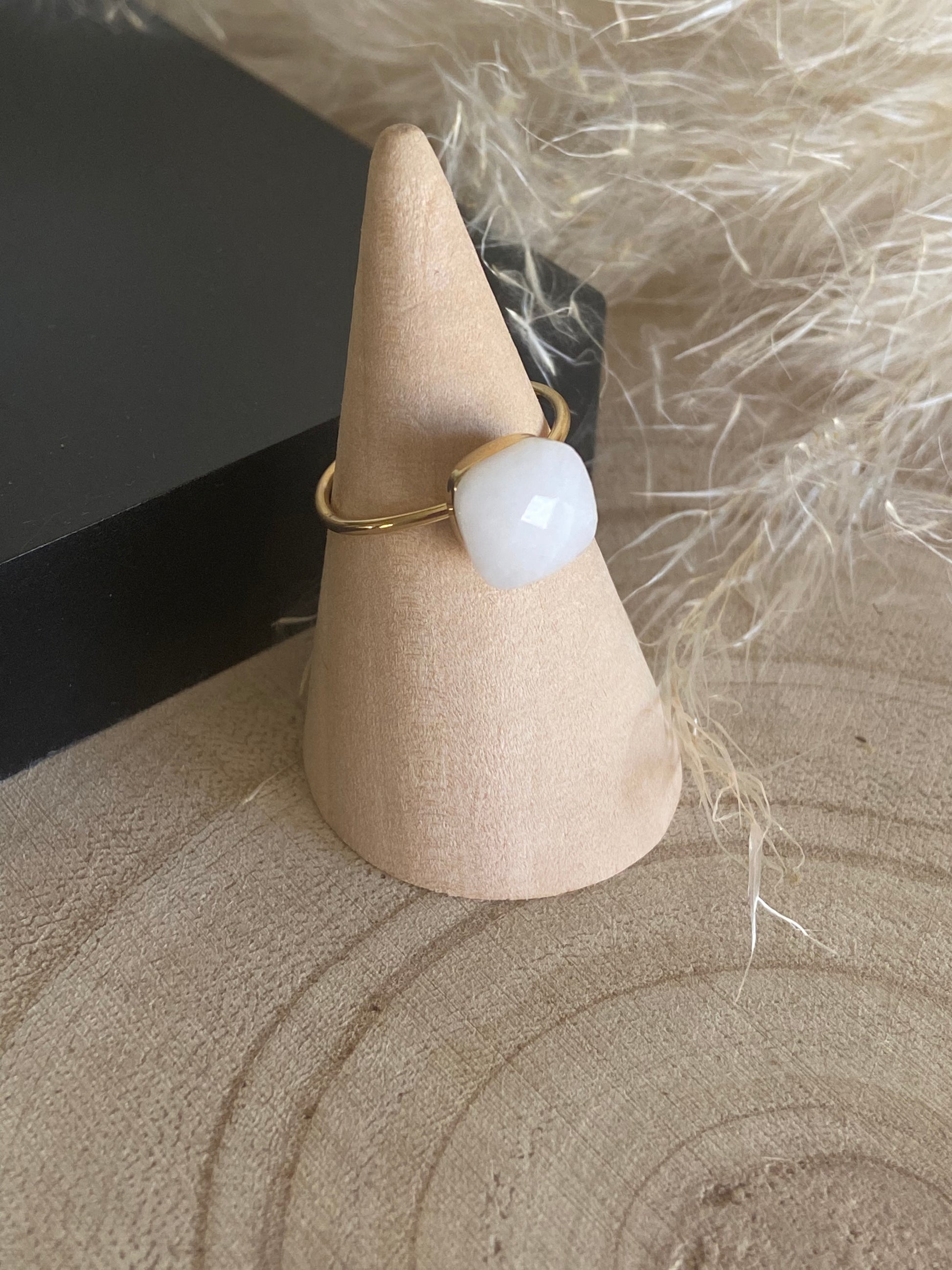 Bague pierre naturelle , ajustable en acier chirurgical 316L doré a l’or fin 18K