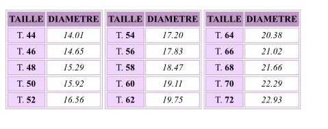 Vous n’êtes pas sur de la taille ? Prenez une bague qui vous va , posez la sur une règle et reportez son diamètre intérieur ( en mm) dans la tableau .
