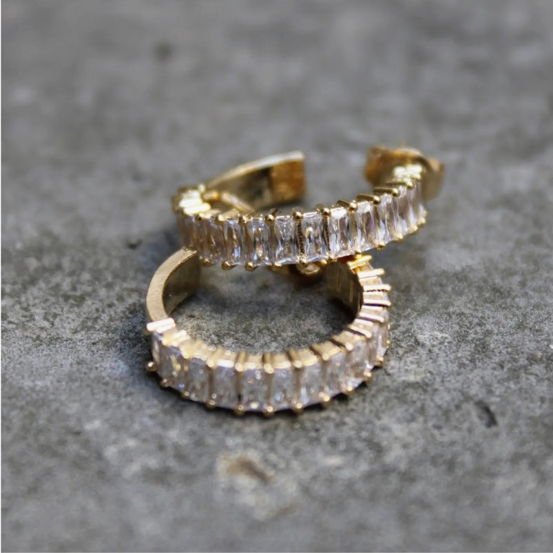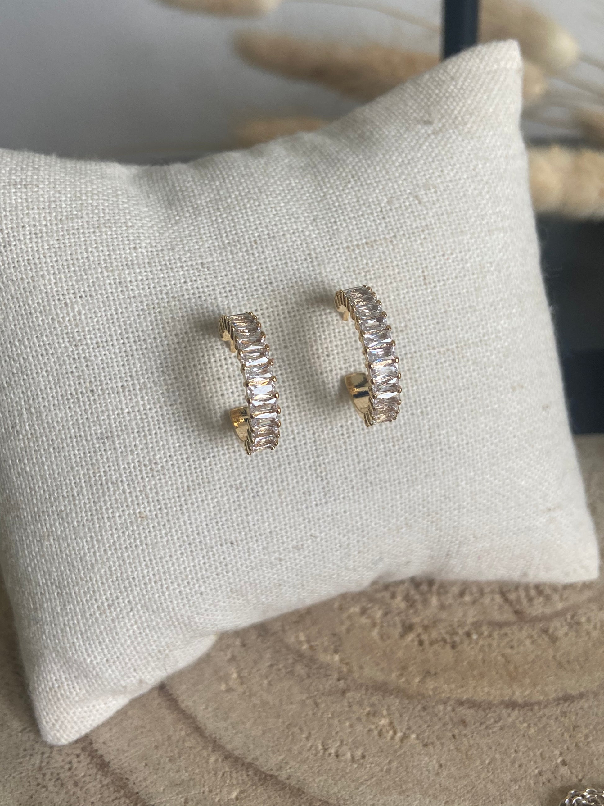 Boucles d’oreilles créoles serties de strass taillés en rectangle horizontal