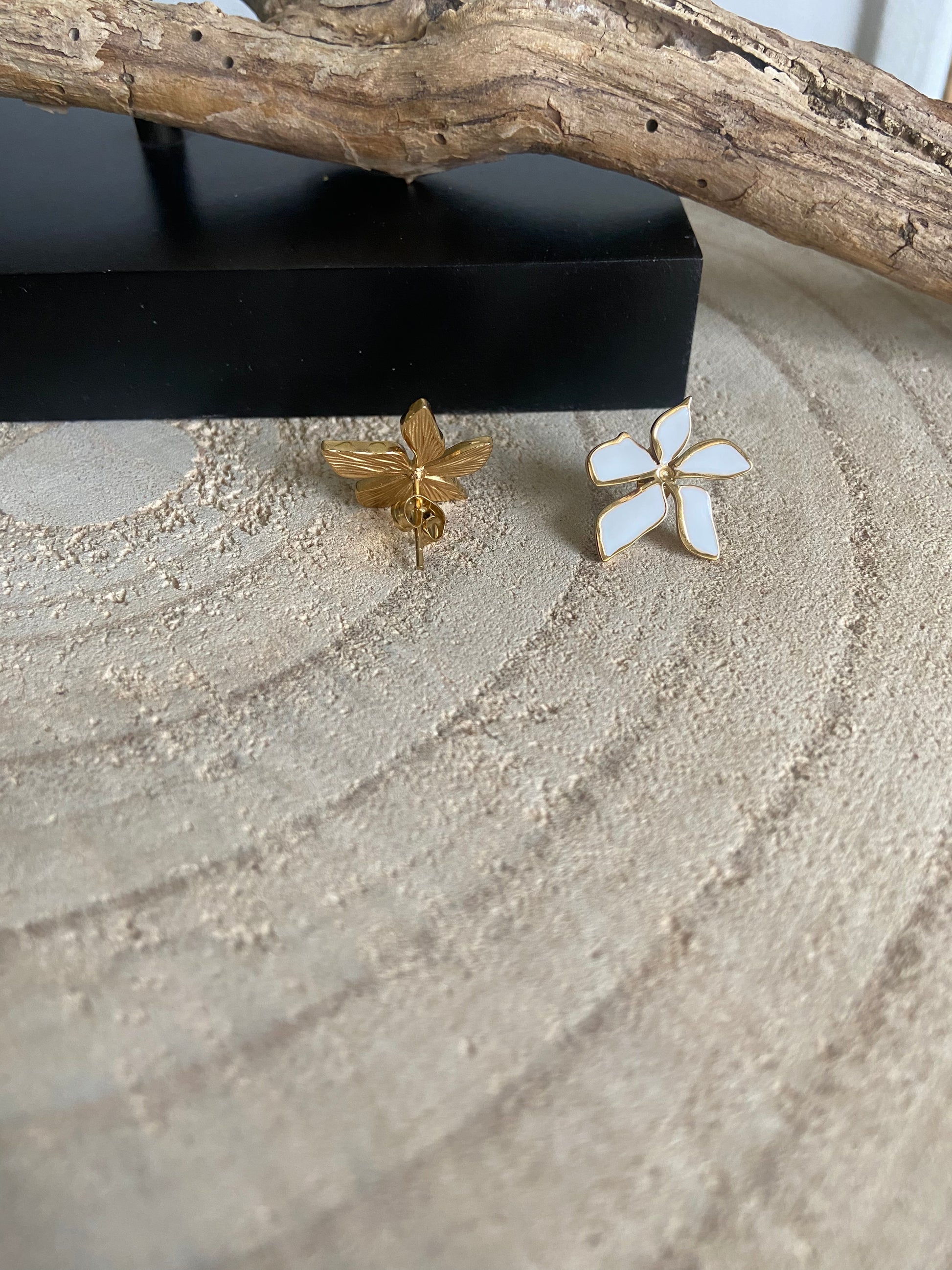 Boucles d’oreilles acier 5 pétales en mouvement émaillés .