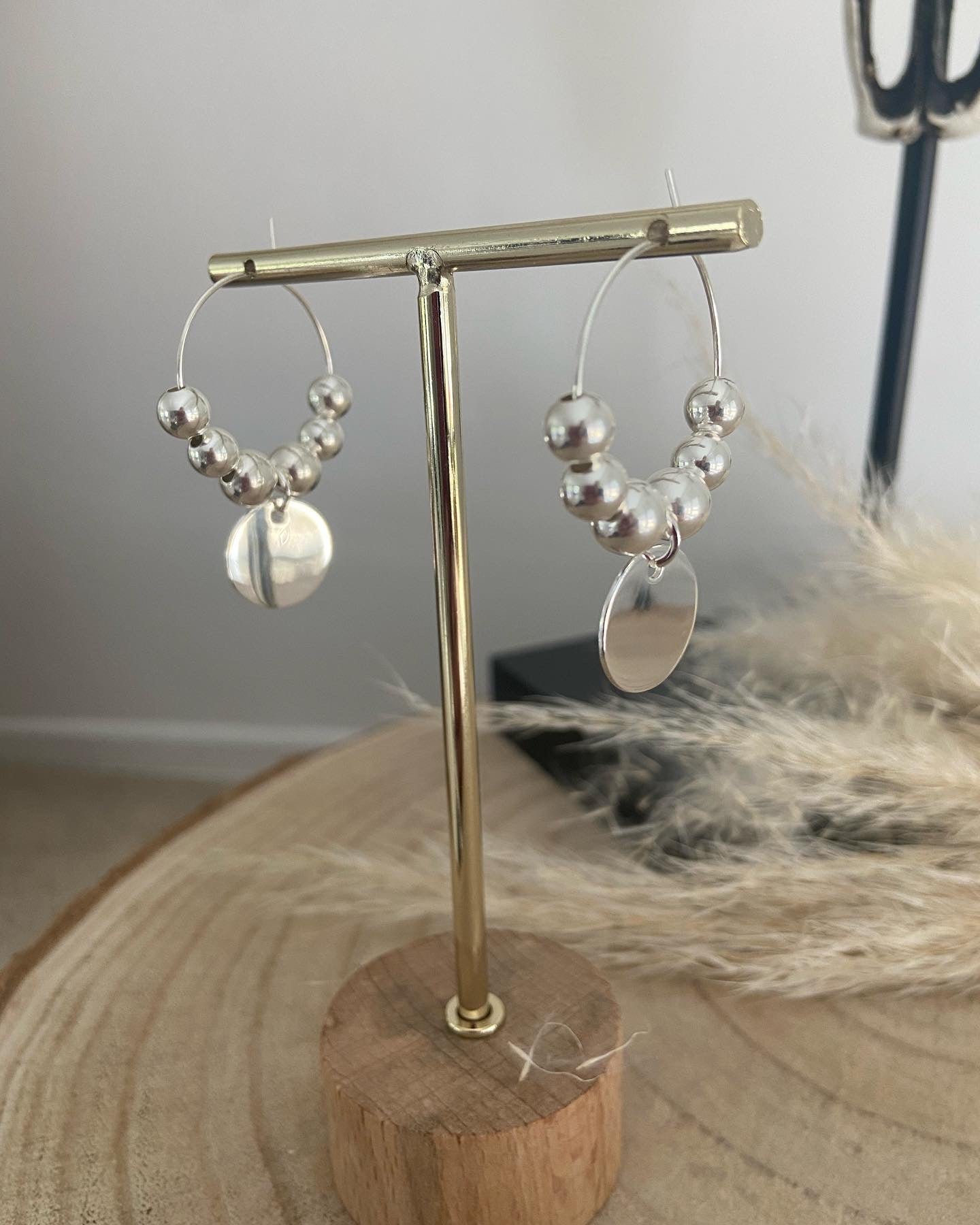 Créoles ( 30 mm ) et perles rondes de 6 mm en argent 925 .