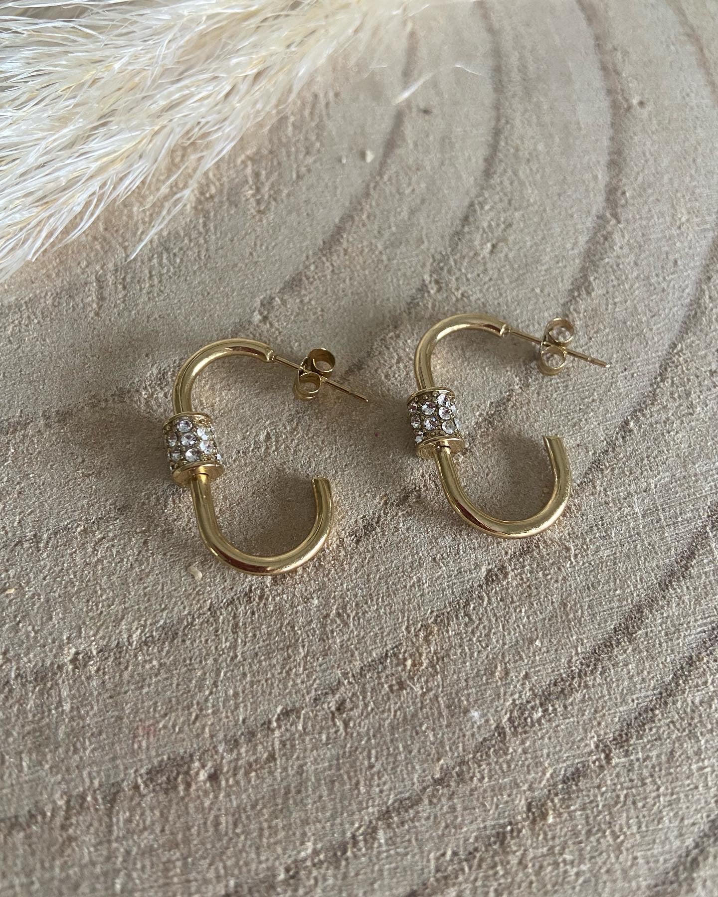 Boucles rectangulaire serties de zircons en acier inoxydable doré