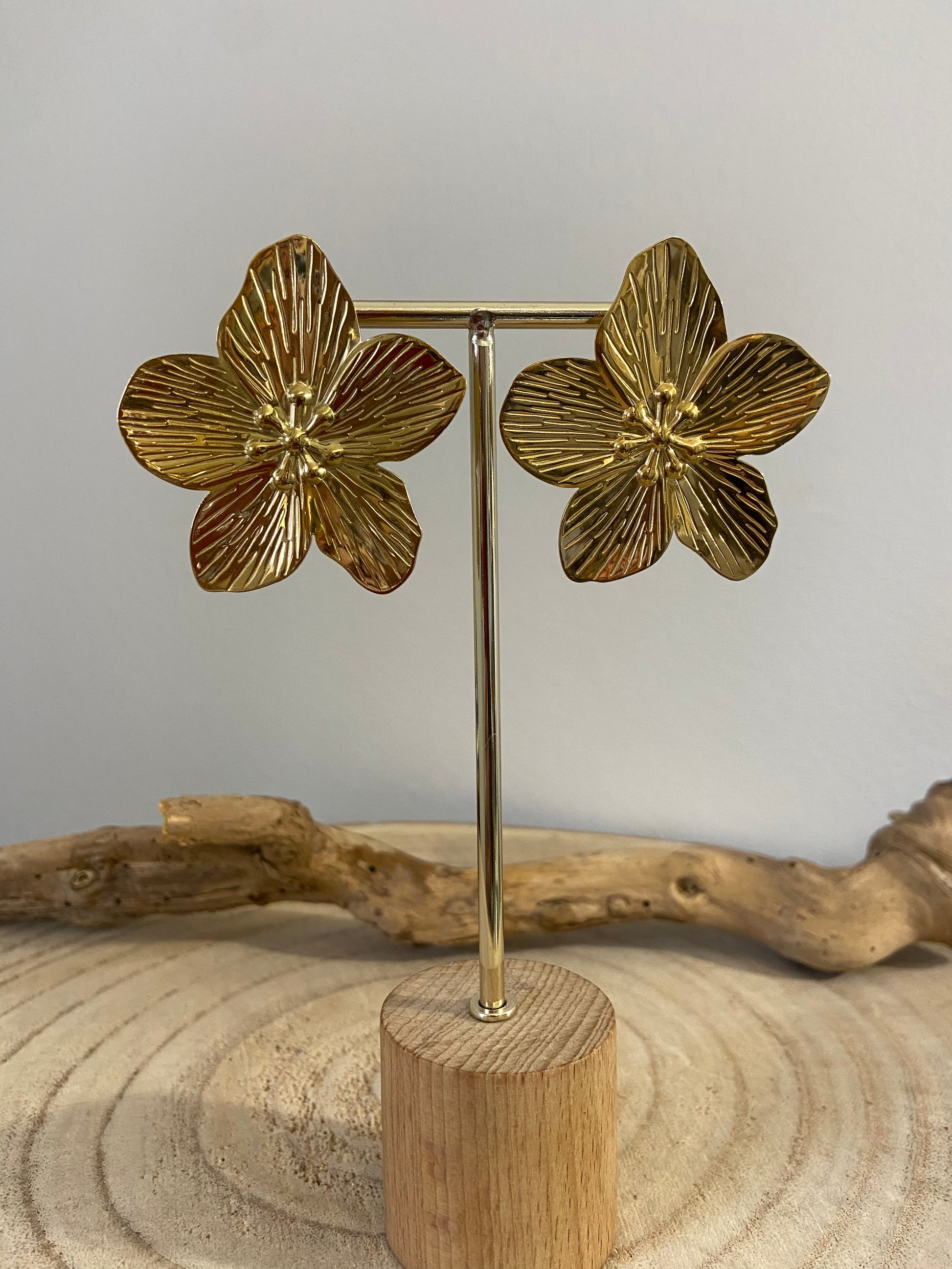 Boucles d’oreilles grosse fleur en acier inoxydable