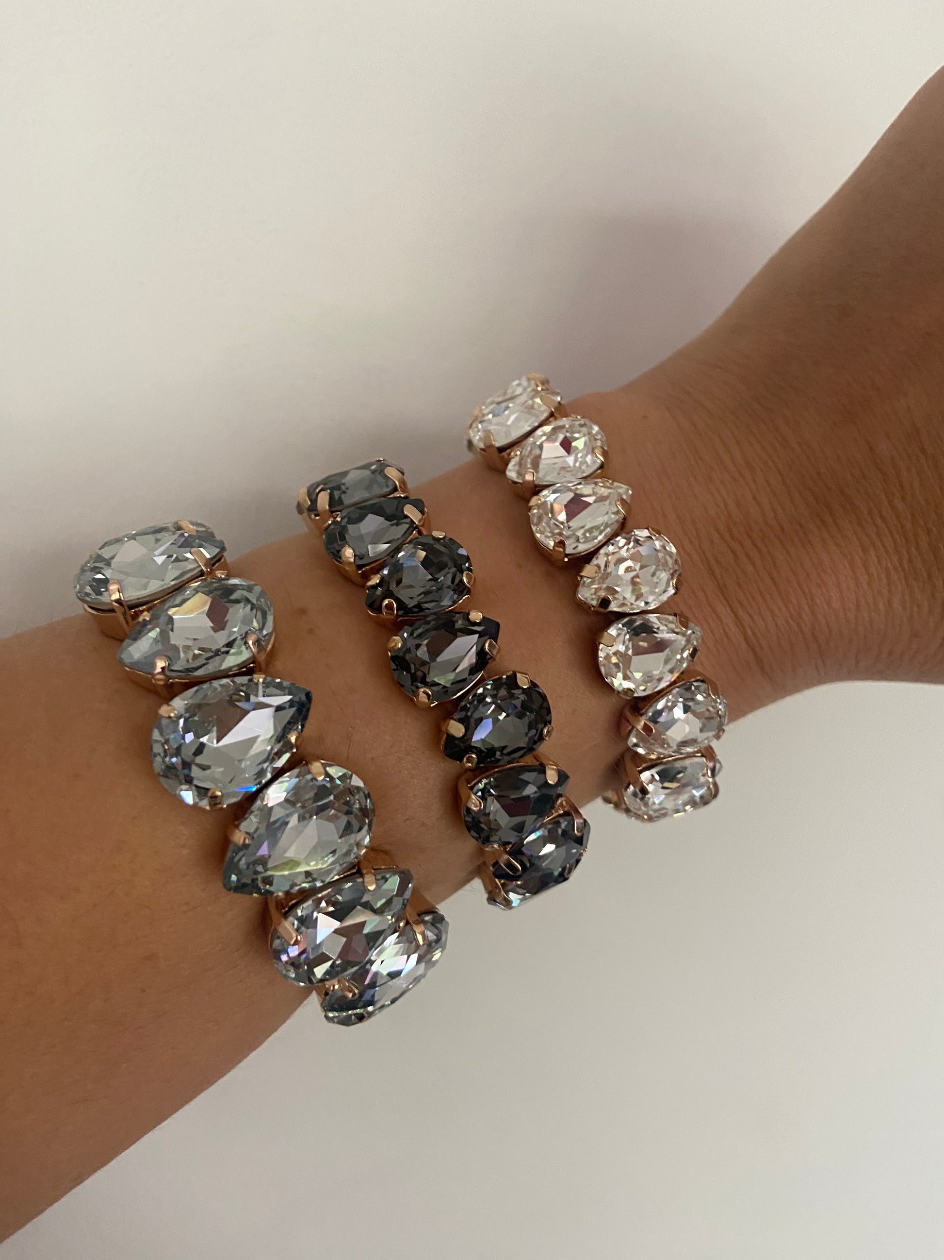 Bracelet en cristal K9 de haute qualité , les bracelets sont montés sur des élastiques résistants. Ils ont une base en laiton avec électroplacage à l’or fin 1 micron.