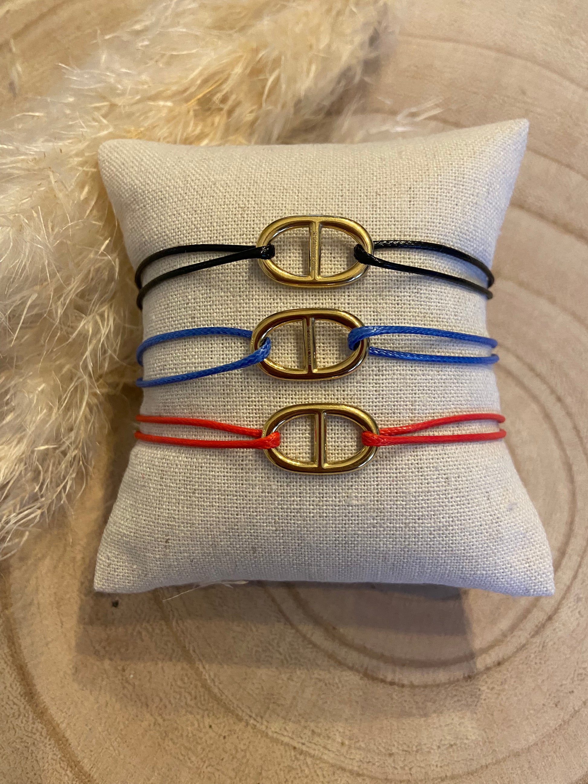 Bracelet cordon et boucle marine en acier inoxydable doré