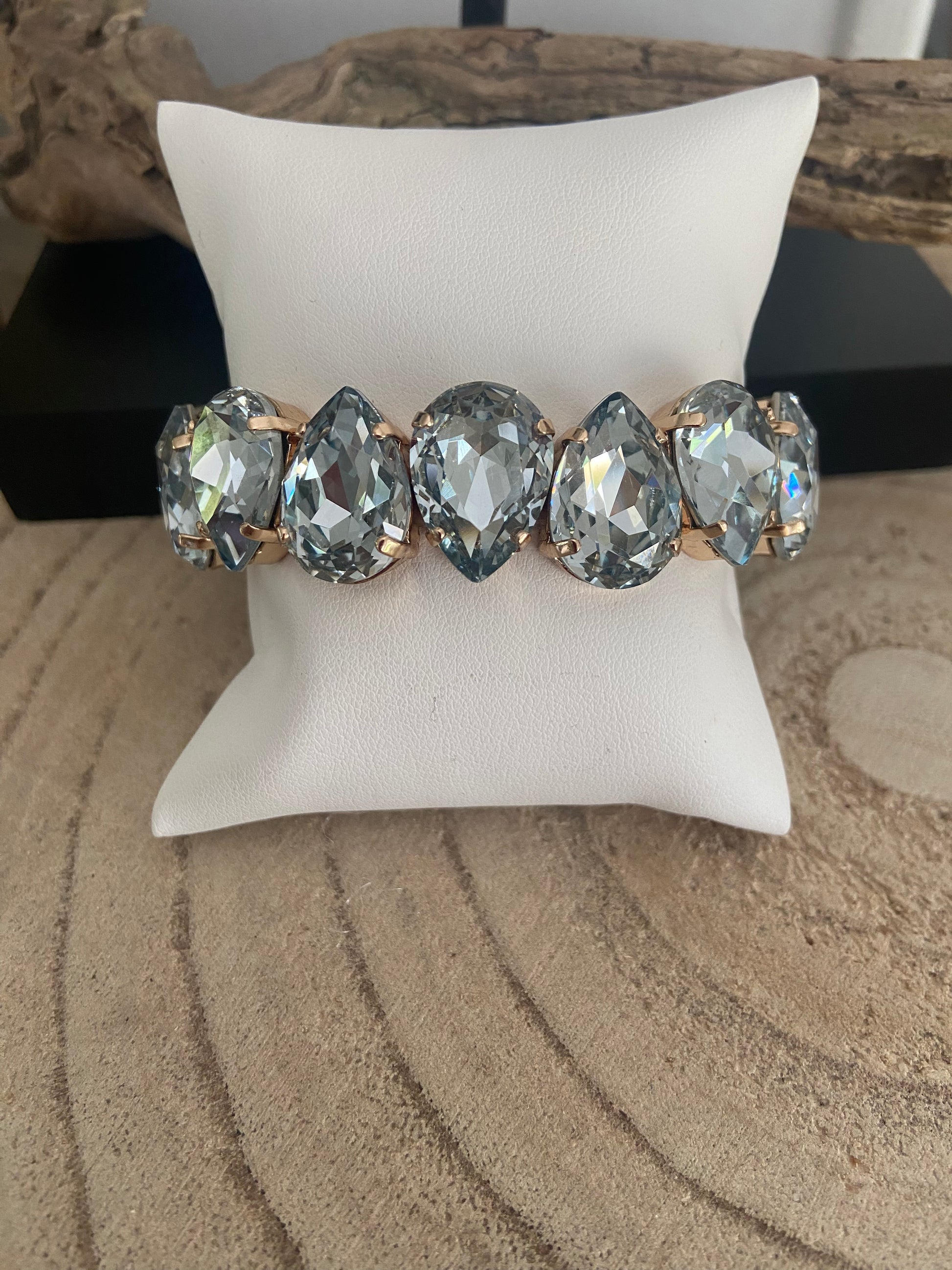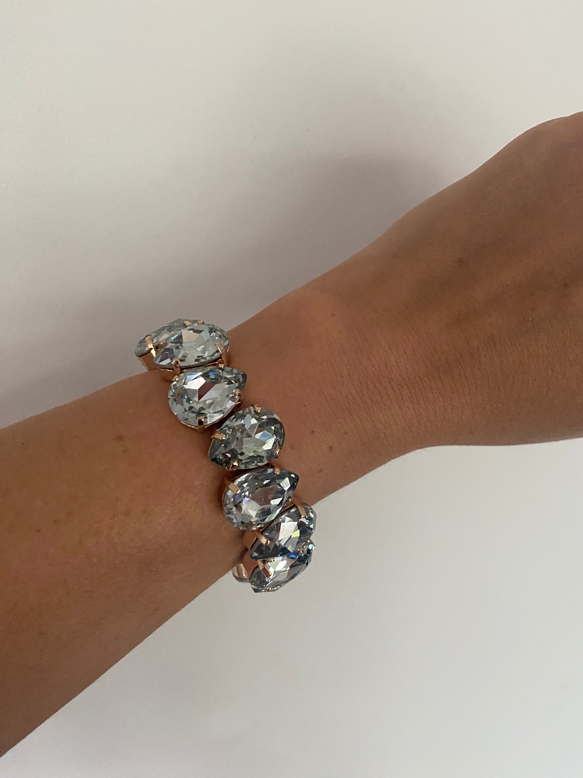 Bracelet en cristal K9 de haute qualité , les bracelets sont montés sur des élastiques résistants. Ils ont une base en laiton avec électroplacage à l’or fin 1 micron.
