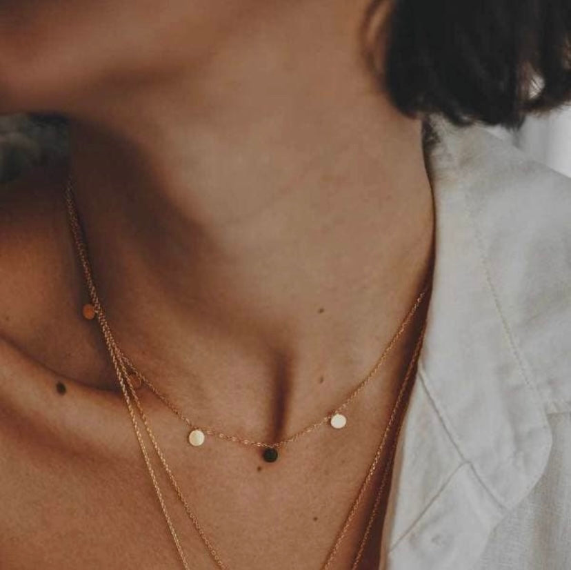 Collier ajustable minimaliste avec pastilles rondes plates. En acier inoxydable 316 L
