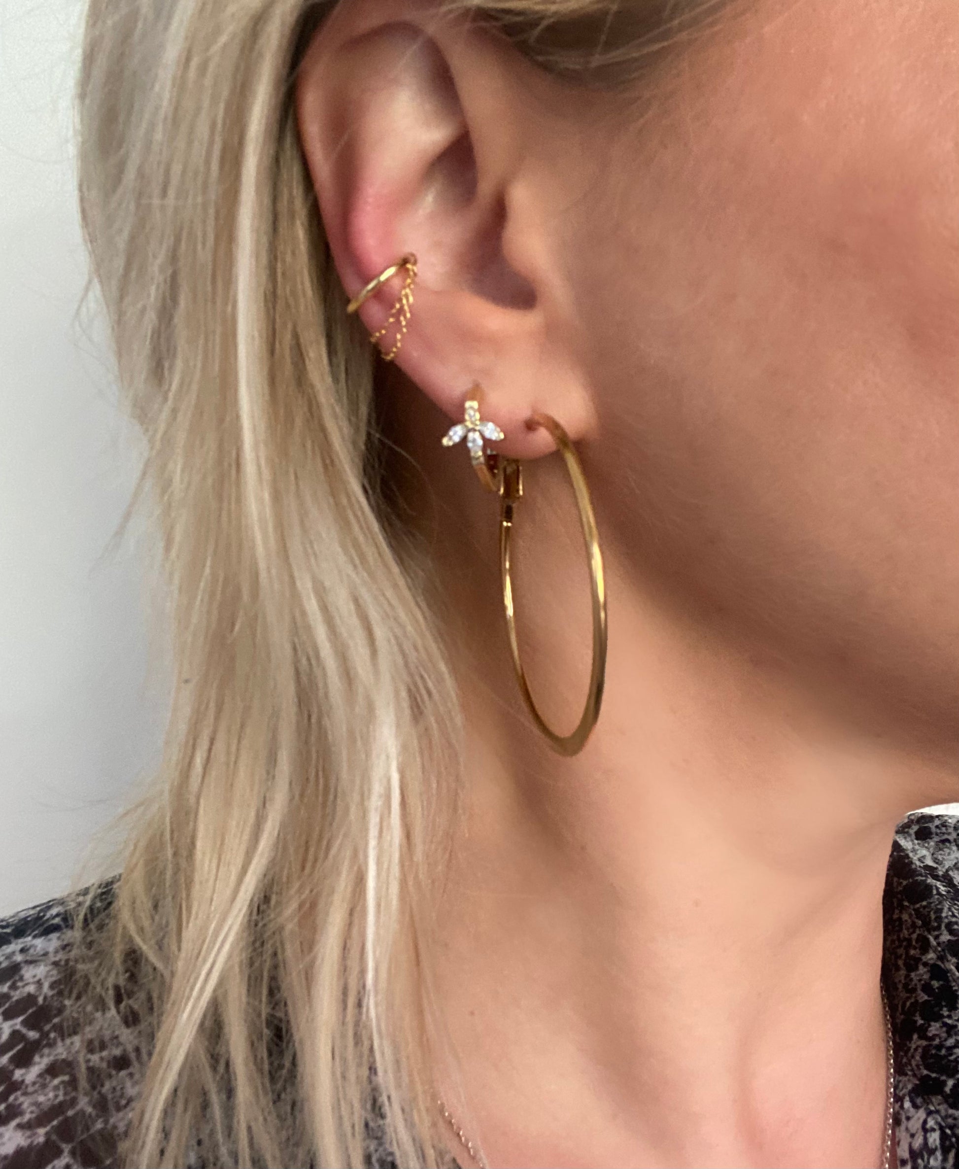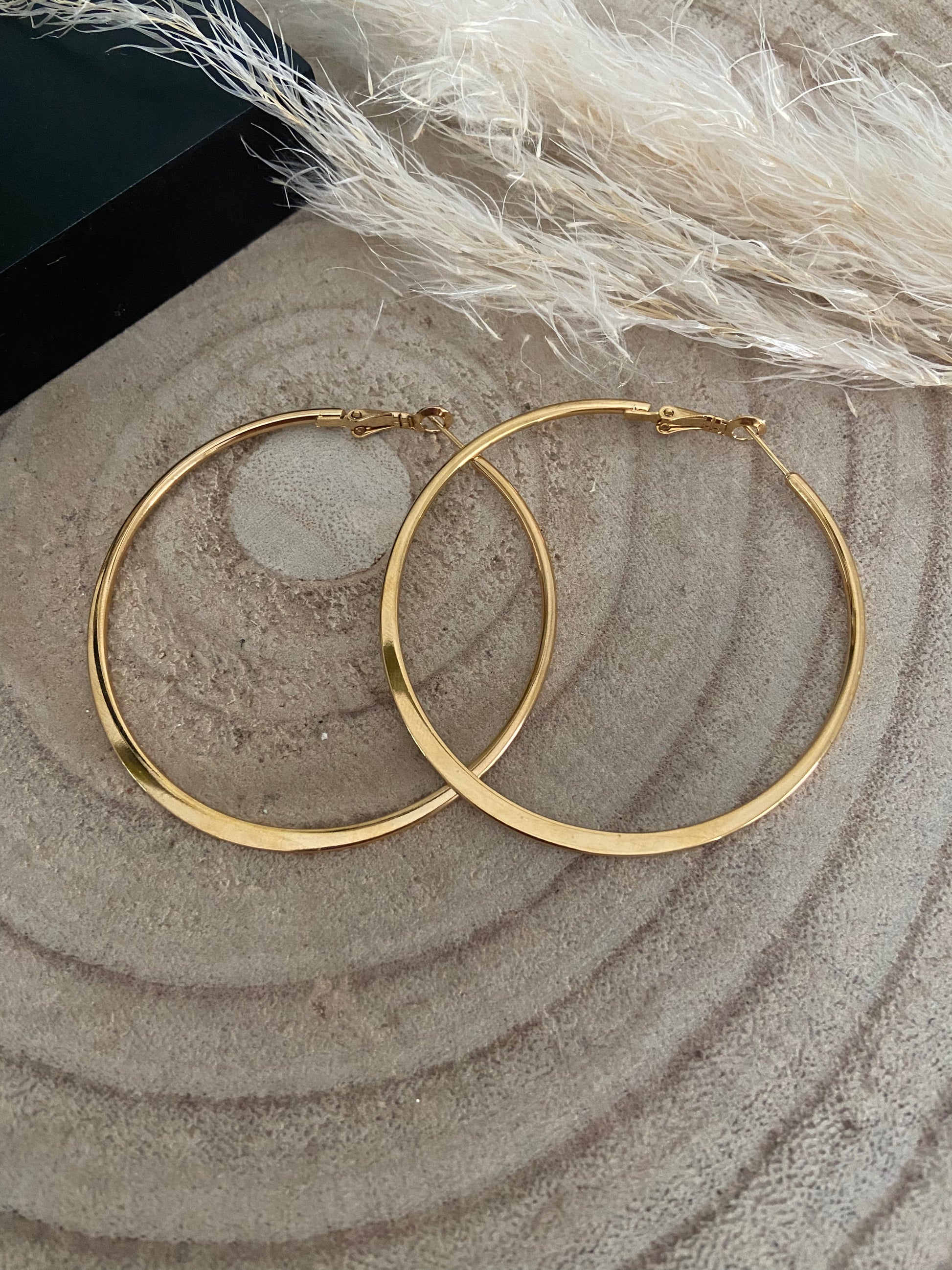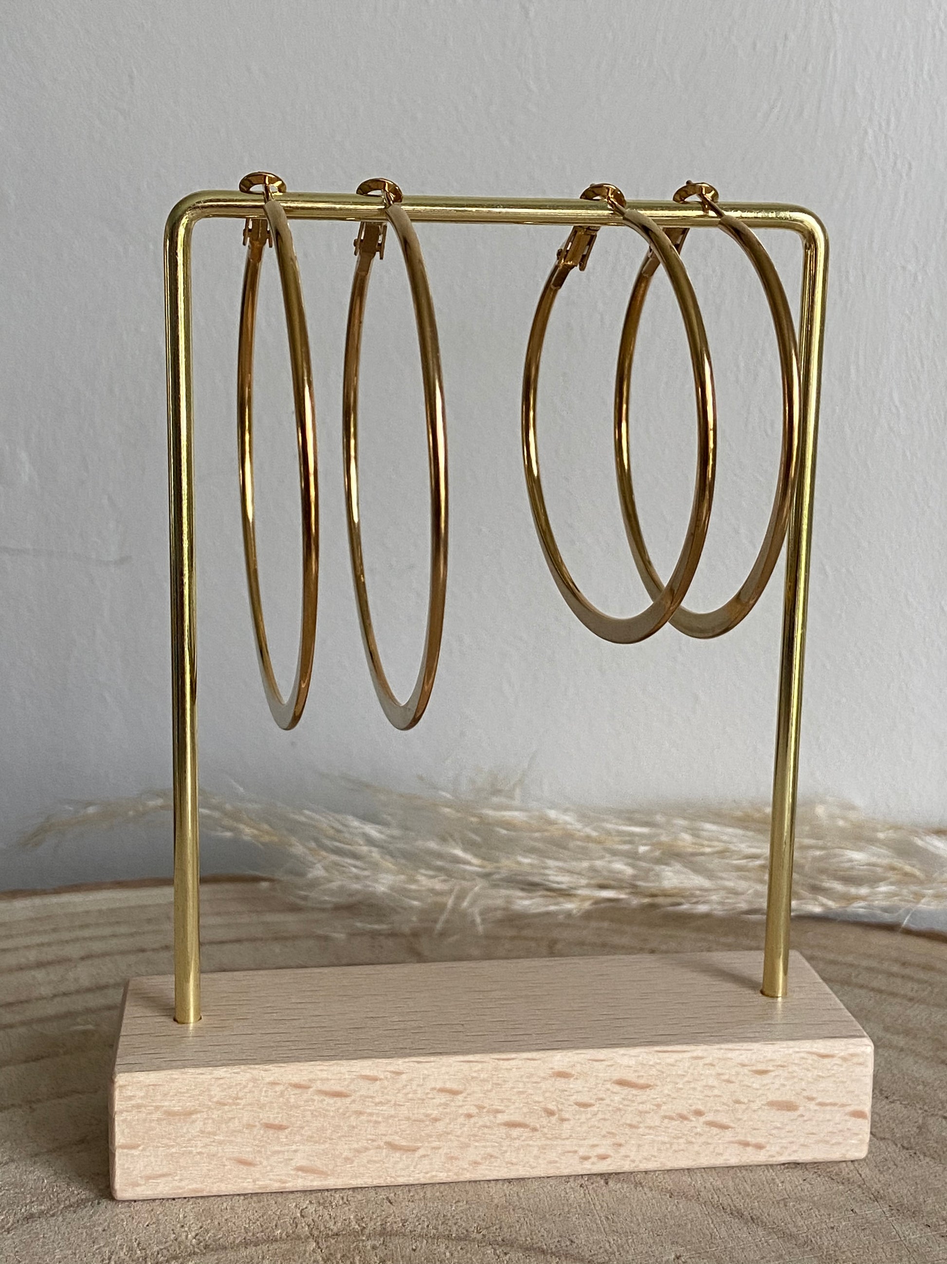 Boucles d’oreilles créoles cylindriques puis aplaties sur le bas, en acier inoxydable chirurgical 316L.