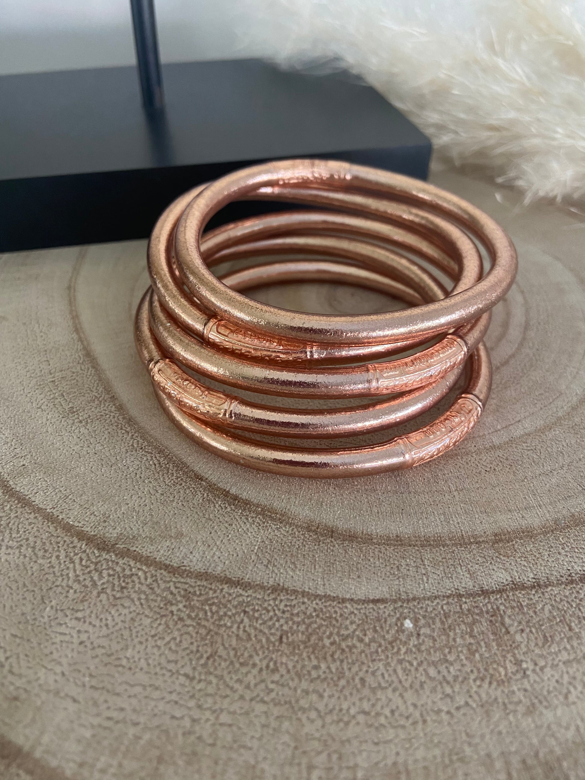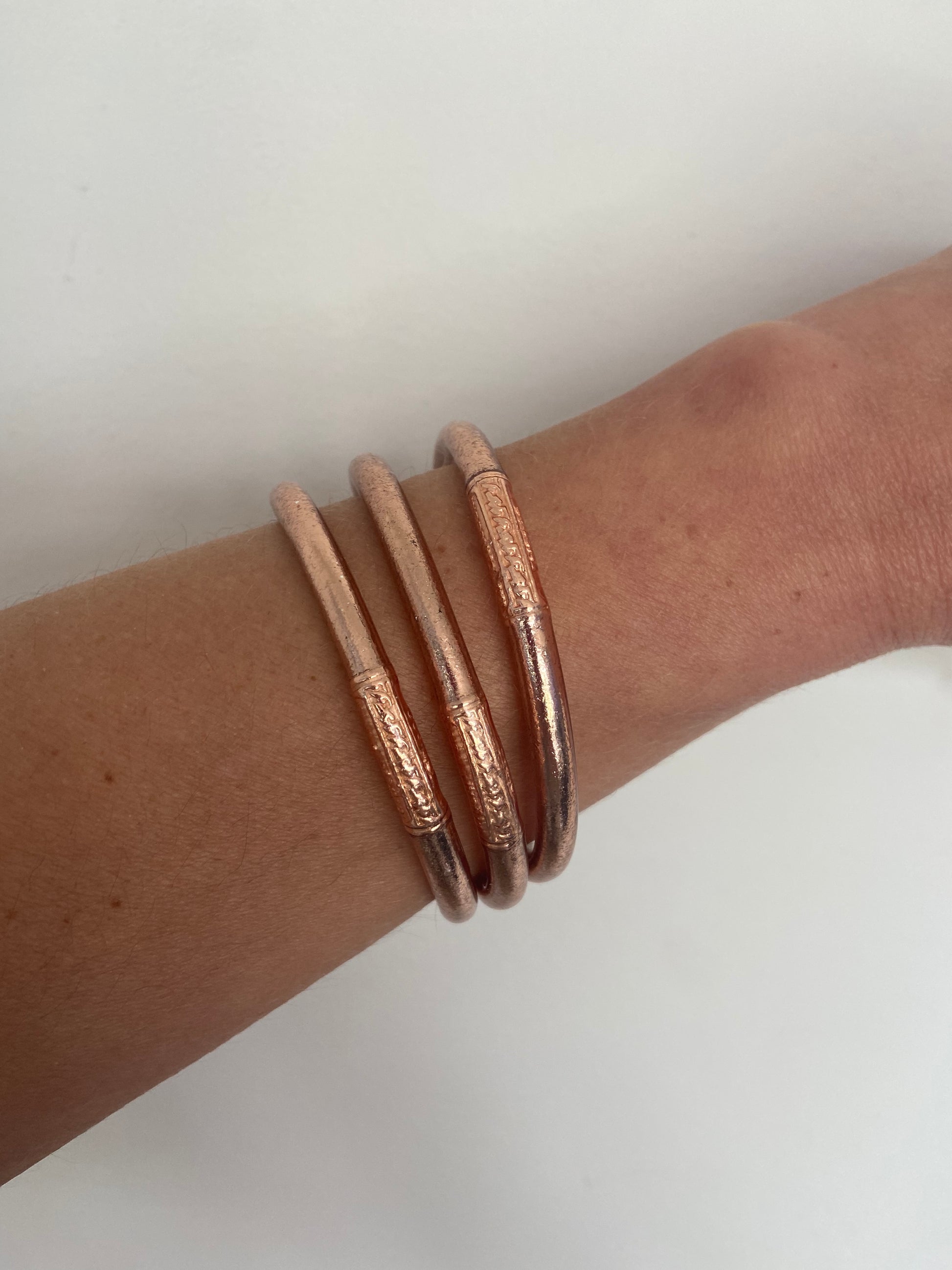 Ce bracelet jonc bouddhiste à la couleur or rose est béni et fermé avec un sceau à mantra sacré , il apporte chance et amour à son détenteur .