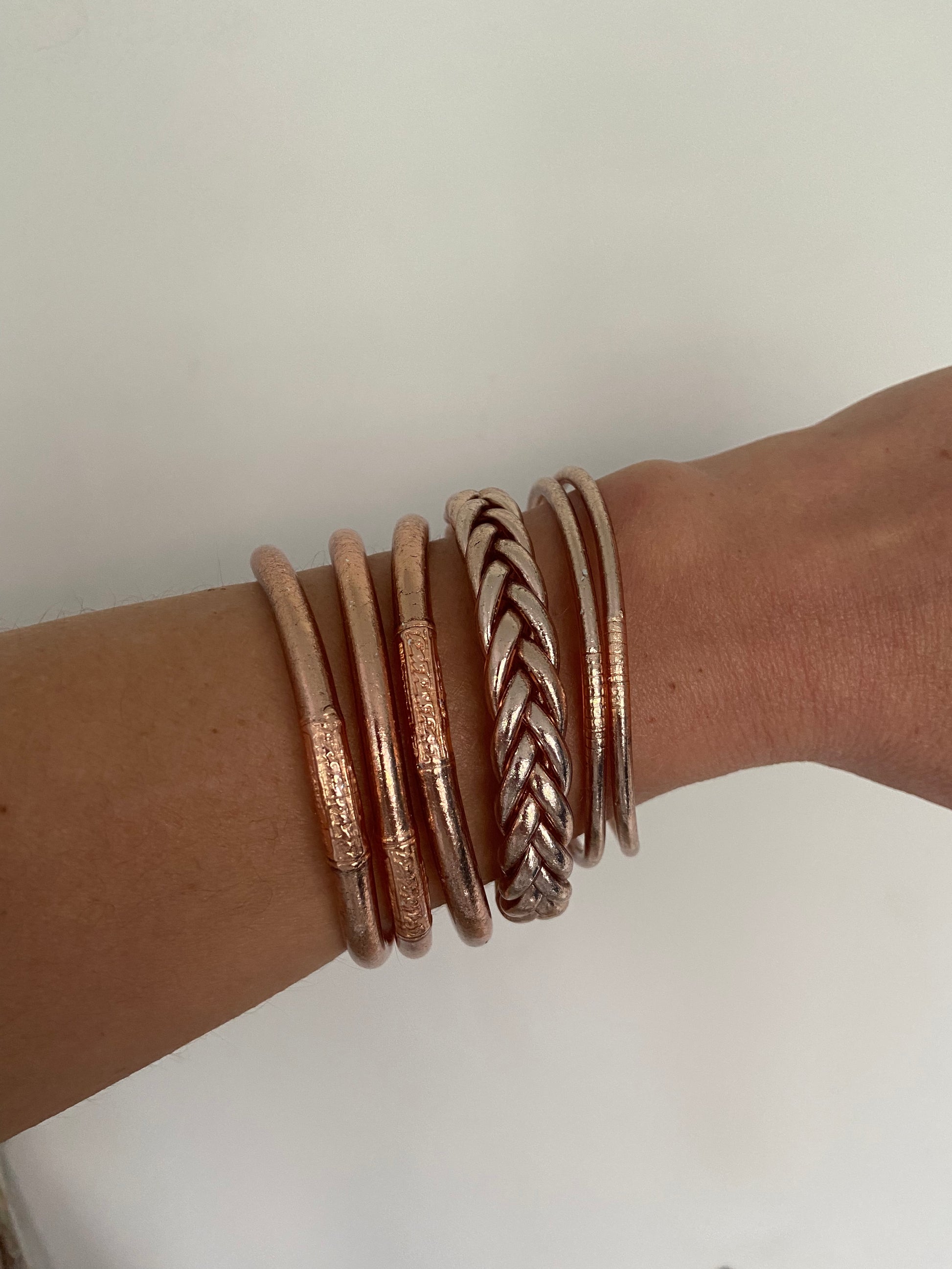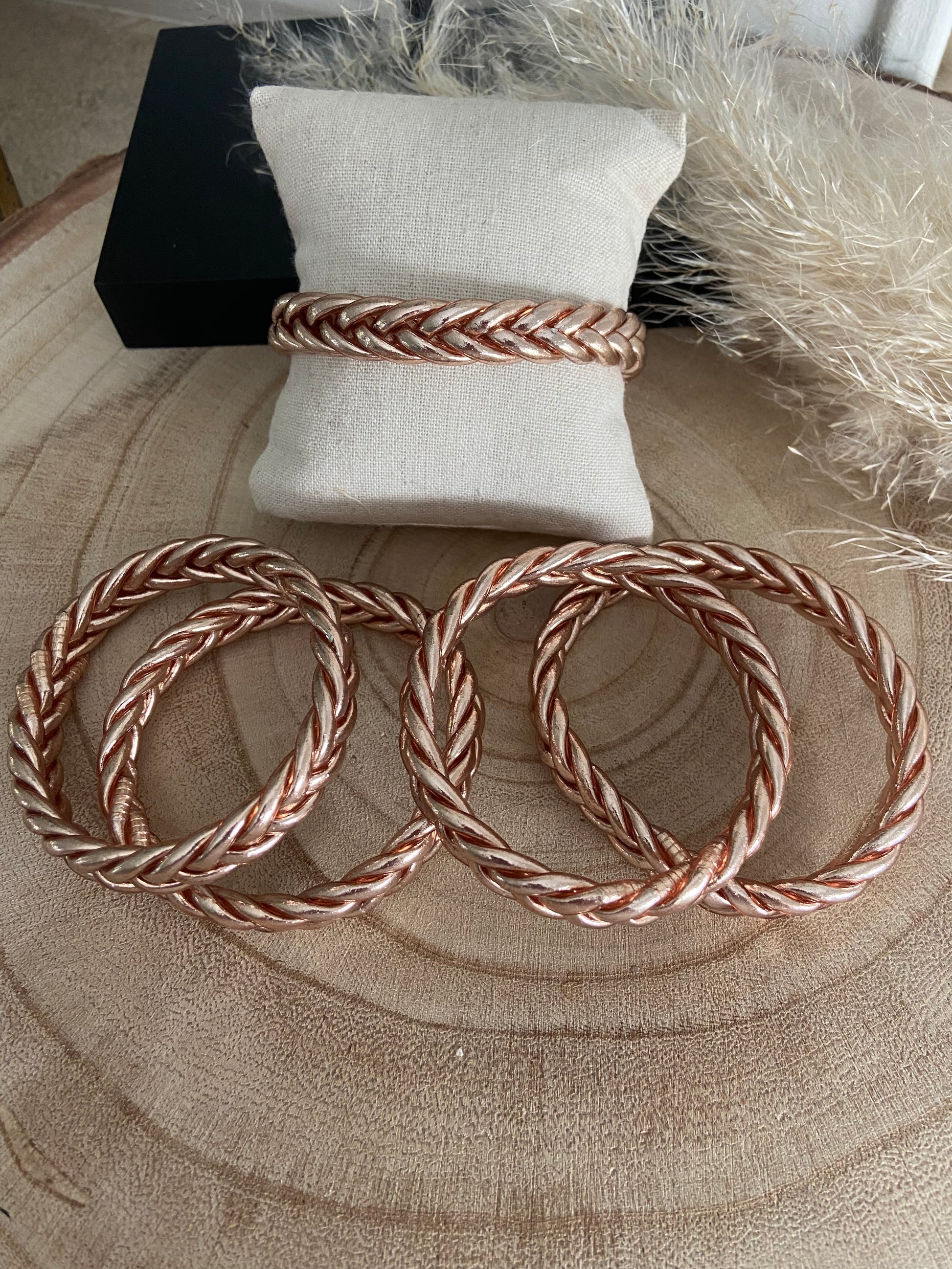 Jonc Bouddhiste Champagne or rose tressé ( taille M)