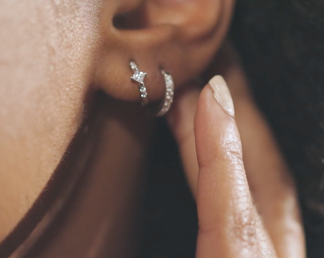 ・ Boucle d’oreille ornée de pierres blanches