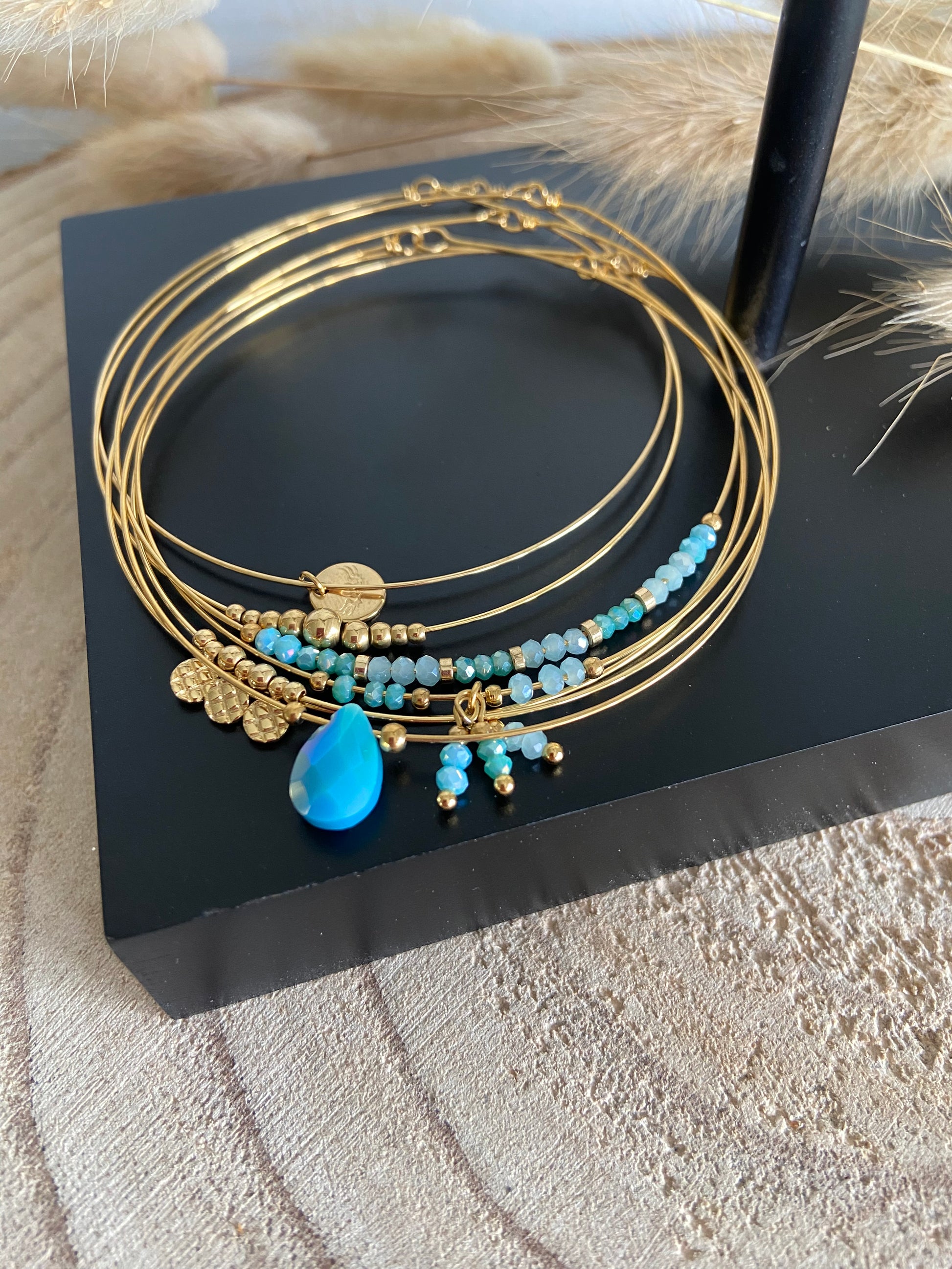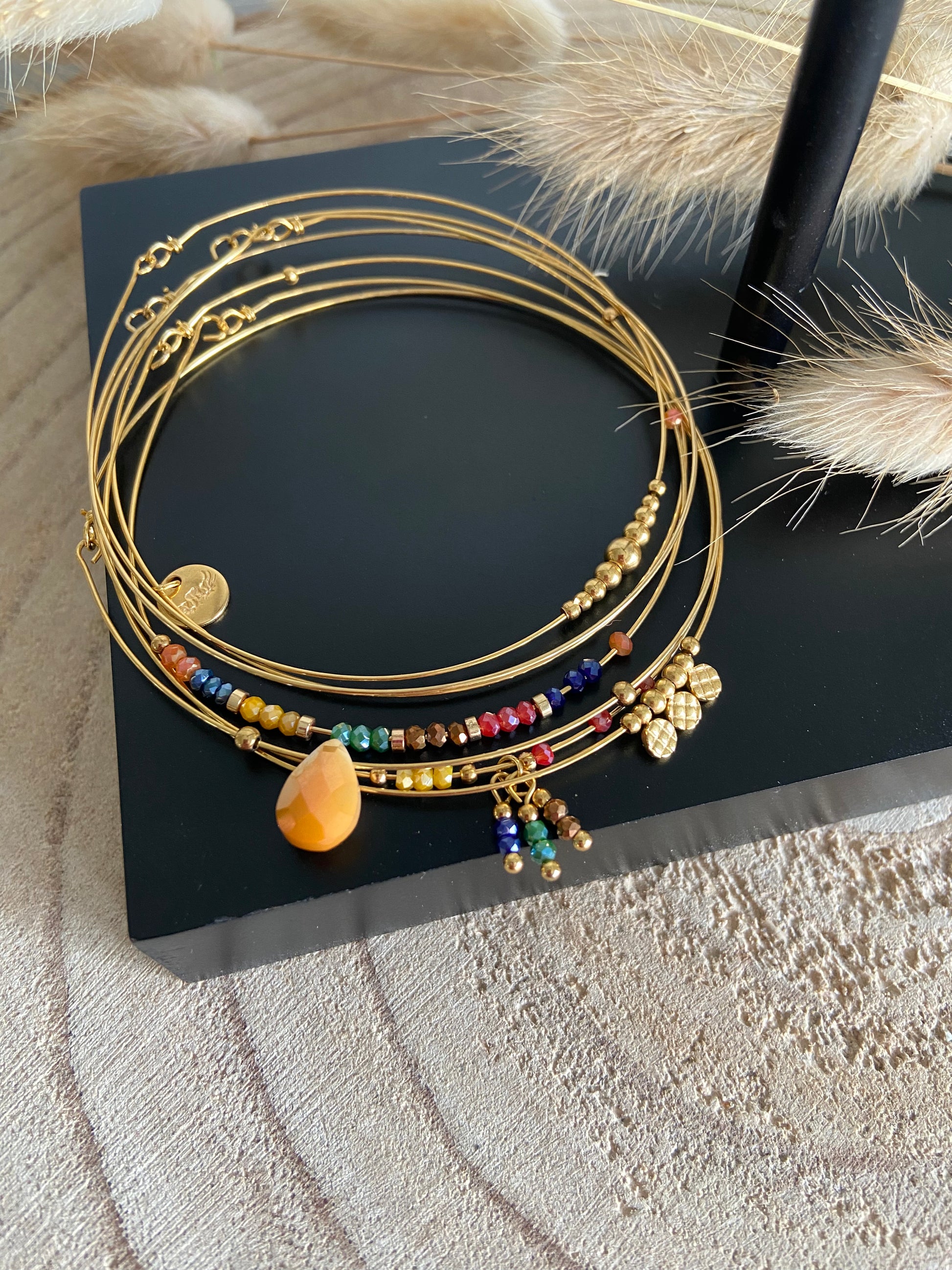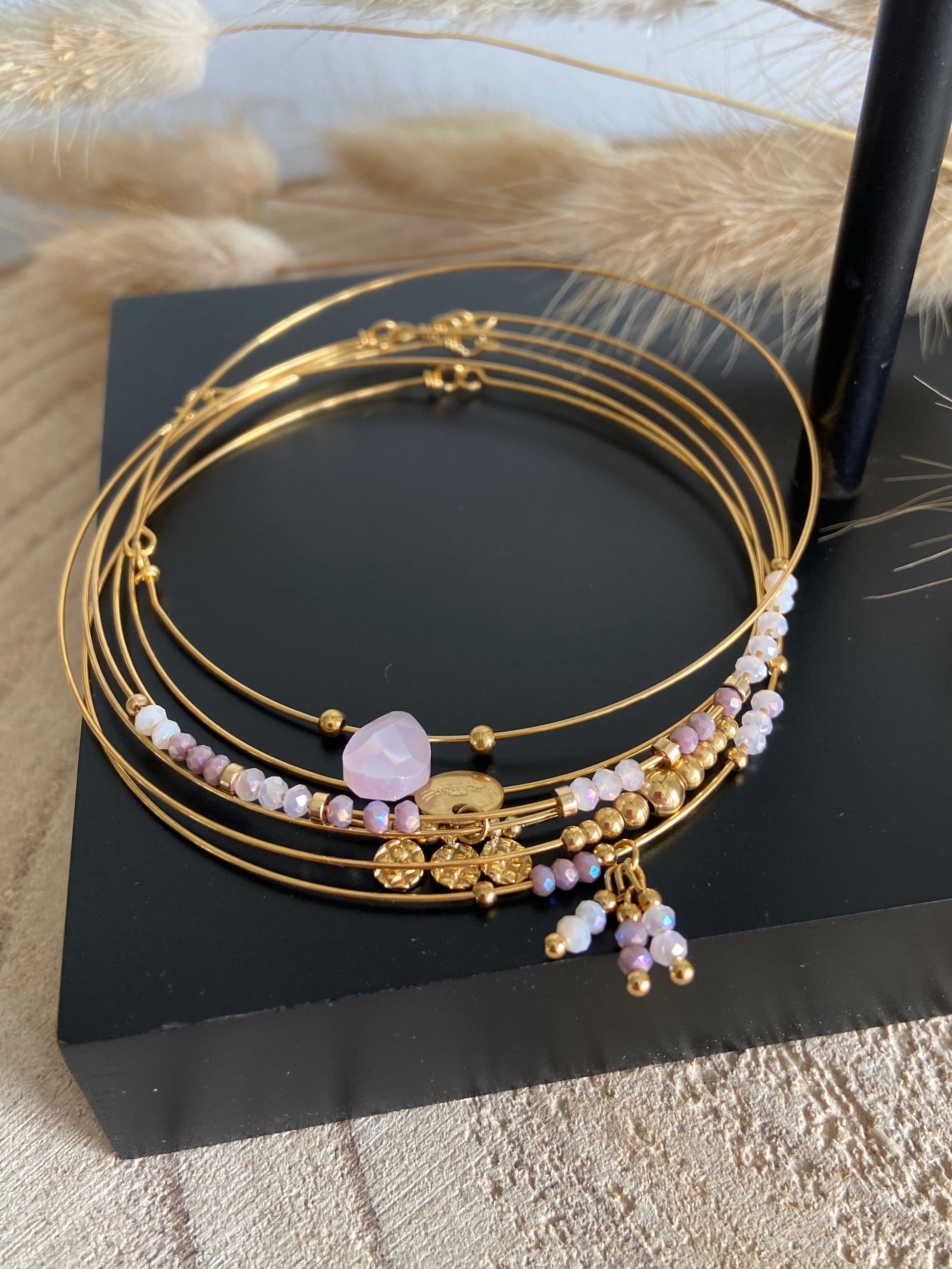 7 joncs fin en acier inoxydable et avec perles fines et pampilles