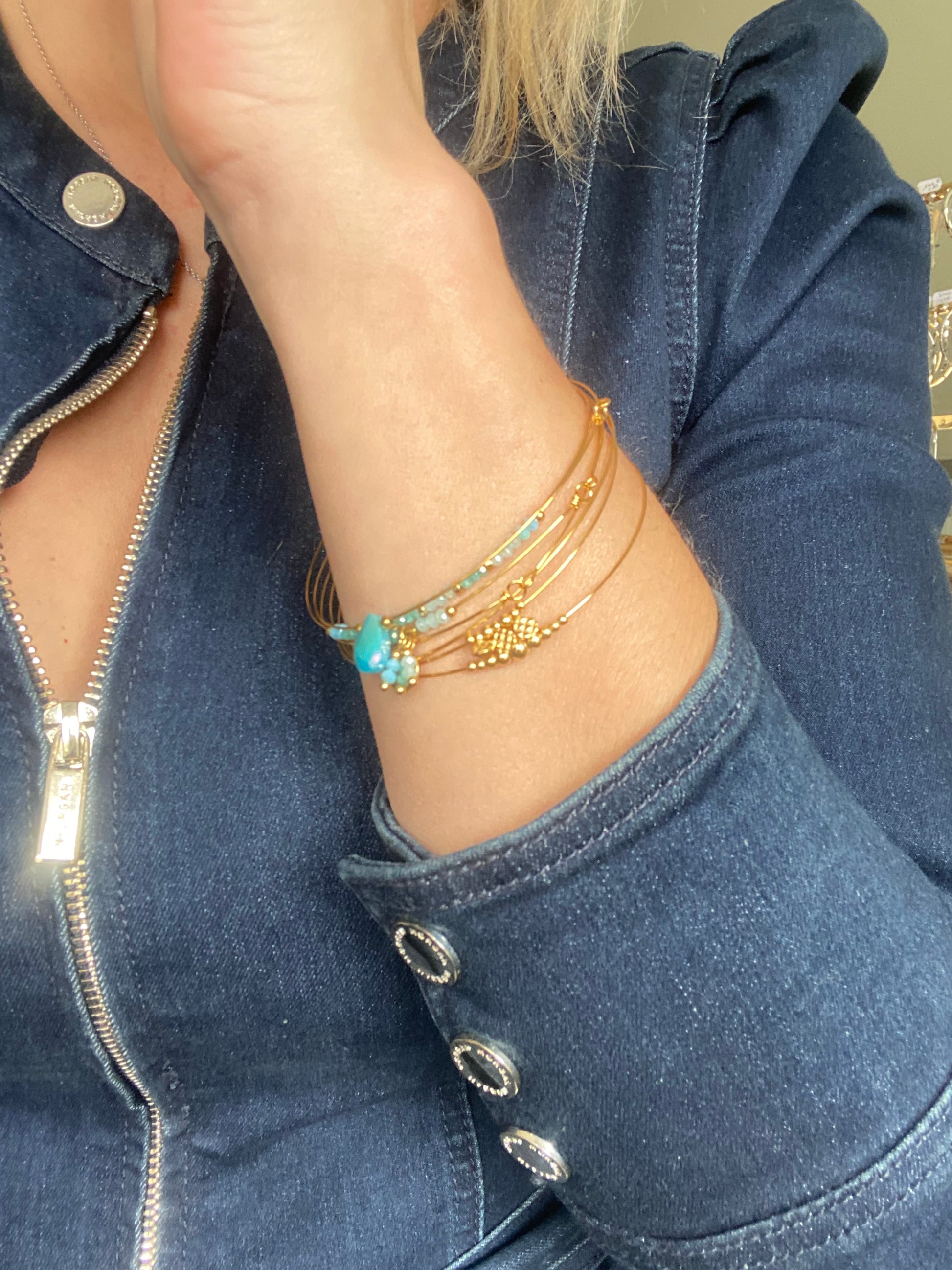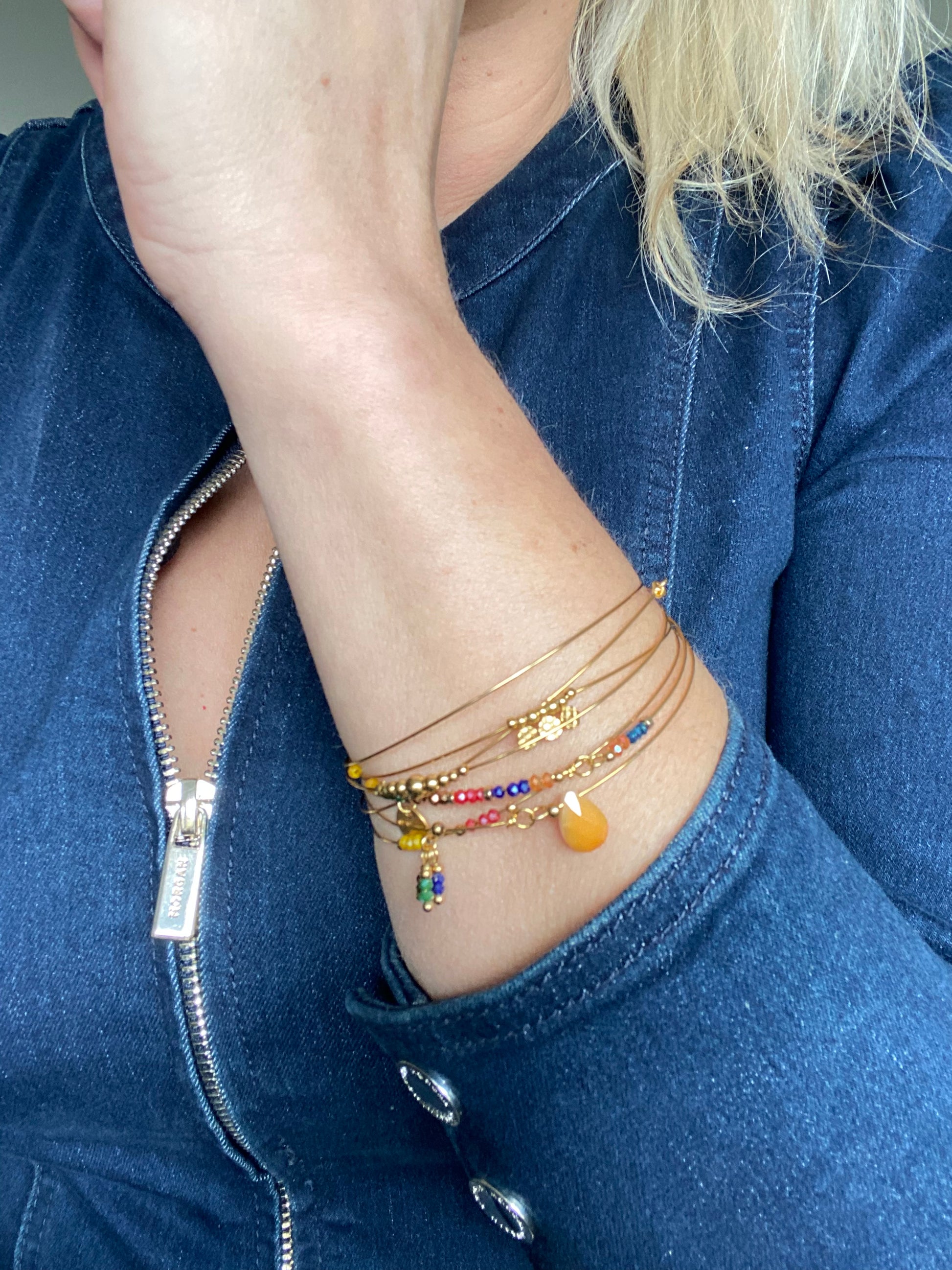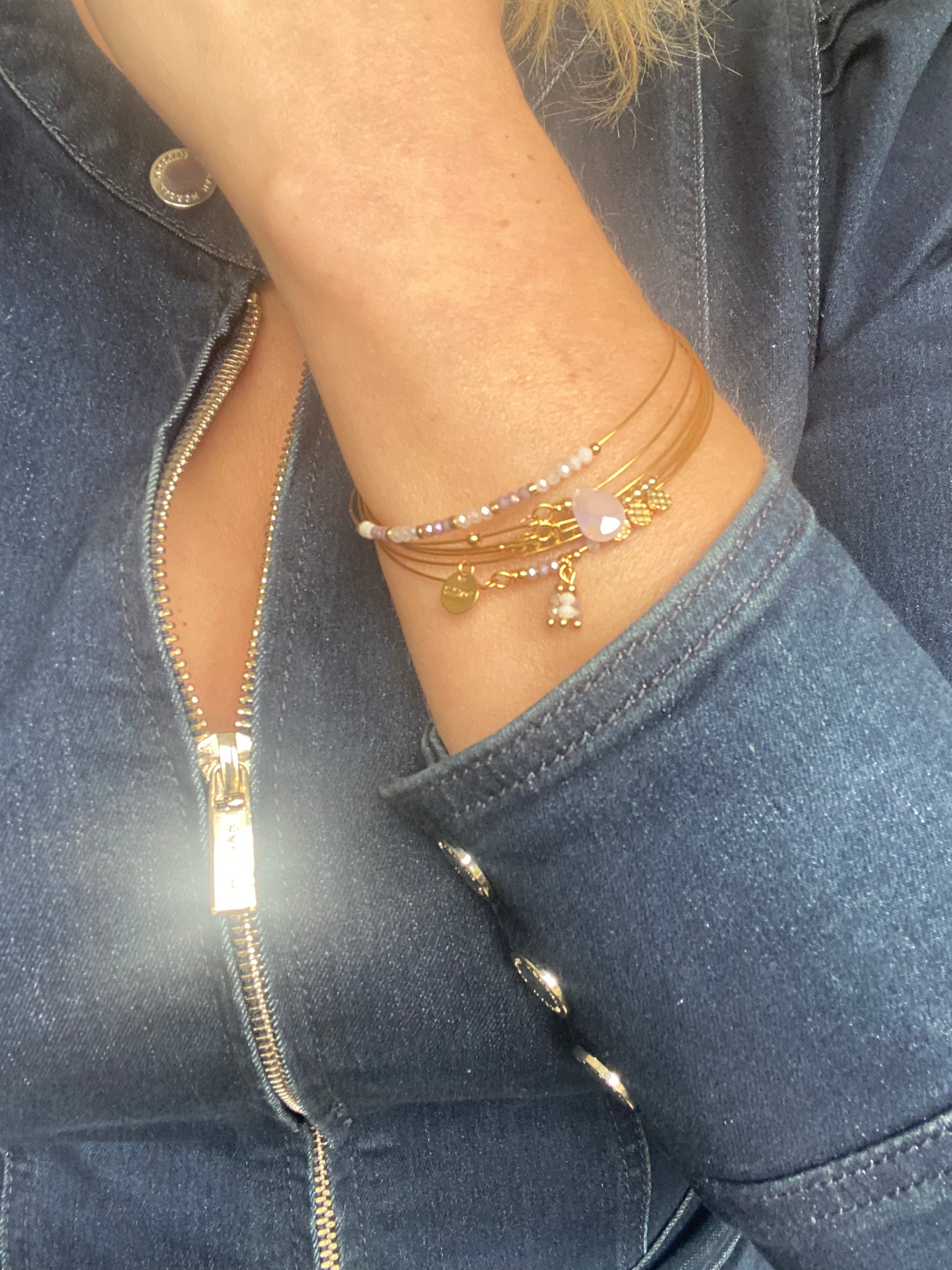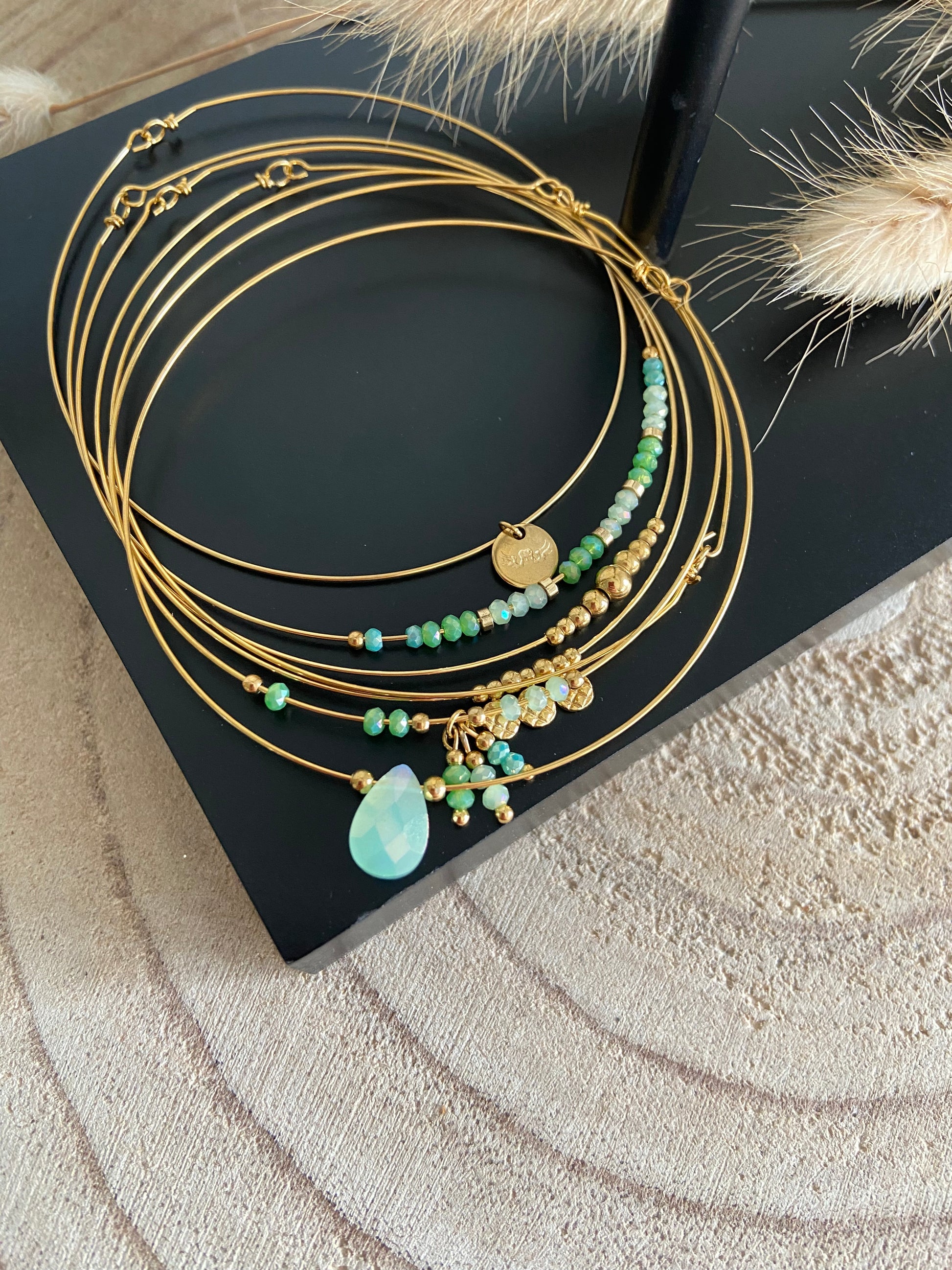 7 joncs fin en acier inoxydable et avec perles fines et pampilles